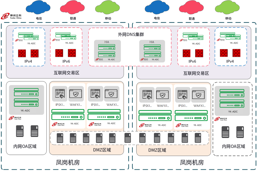 1、以xingkong星空应用交付体系为基础构建的新型交付型同城双活数据中心架构,保证数据中心高可用、灵活、便捷扩展、双中心双活