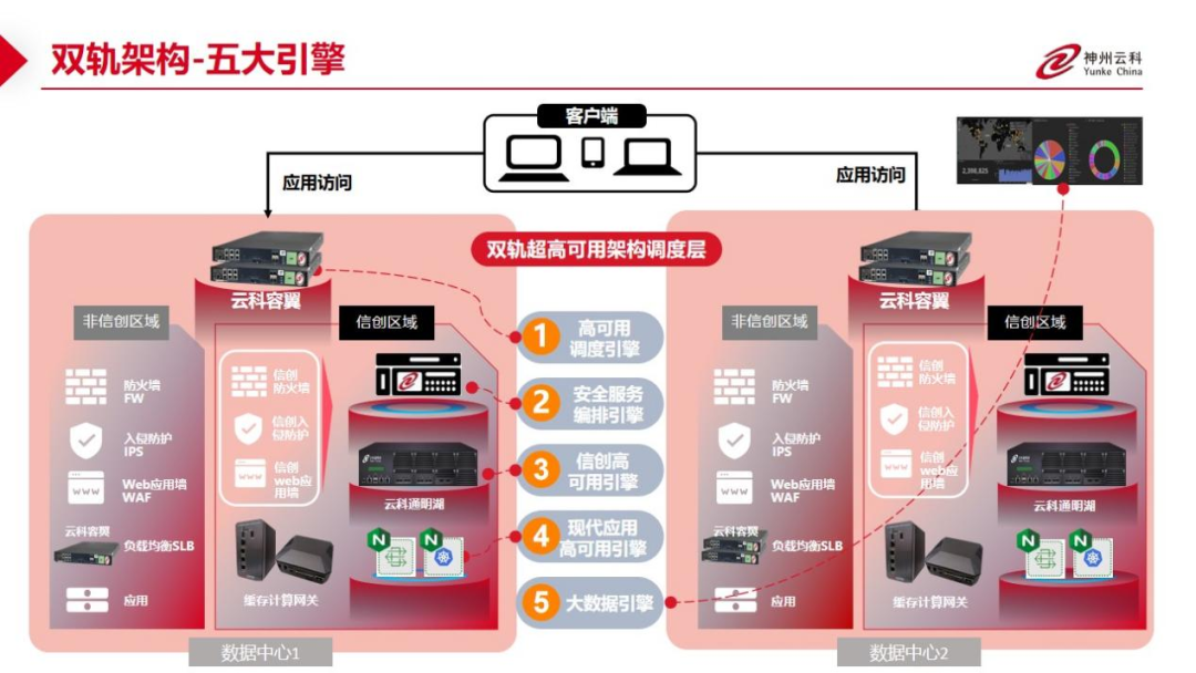 数据中心架构在自主创新的过程中分解为现有架构的非信创区和信创区的两个业务区域,在每个数据中心分为信创区和非信创区后,在两个区域之间的跨区跨域协同方法,xingkong星空通过5大引擎实现多层次的应用可持续性实践。